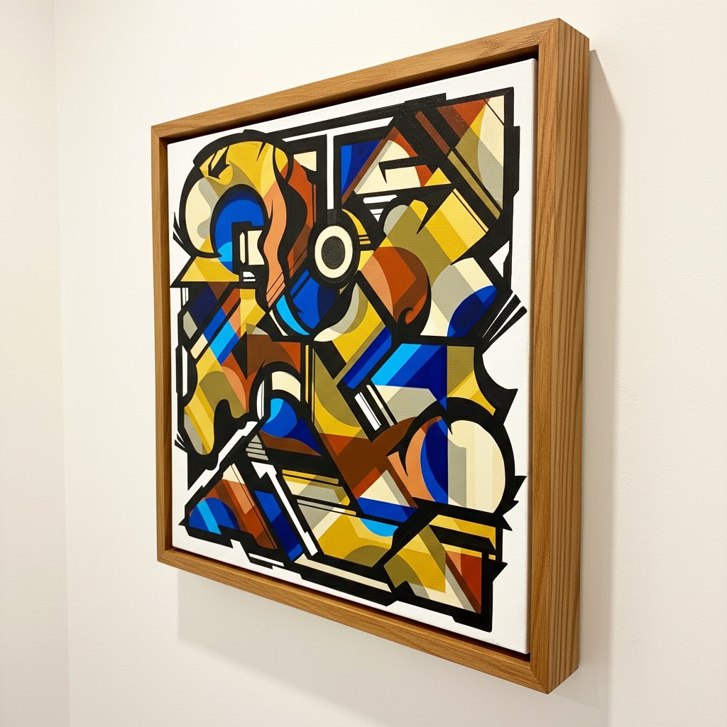 Abstractions géométriques, formes rythmiques et couleurs vibrantes. Chaque toile est unique, pensée pour résonner avec son environnement.