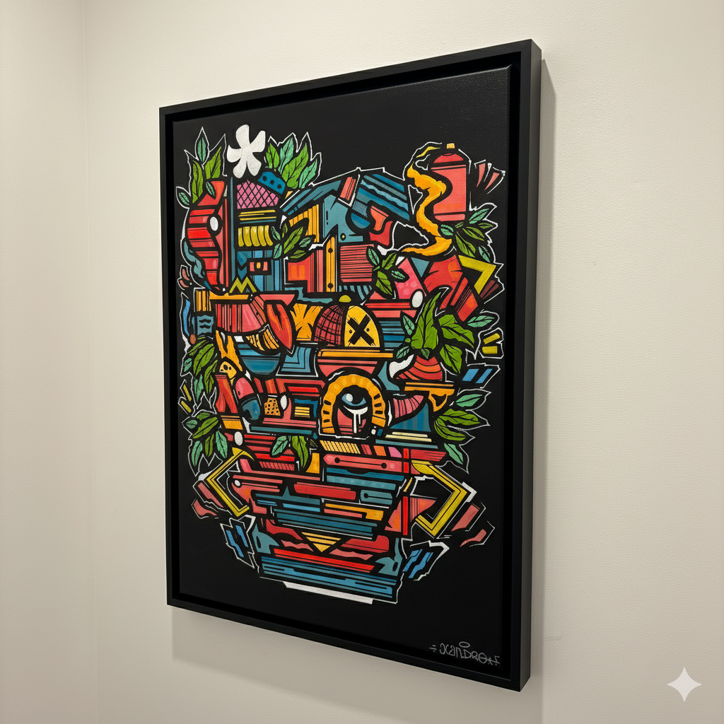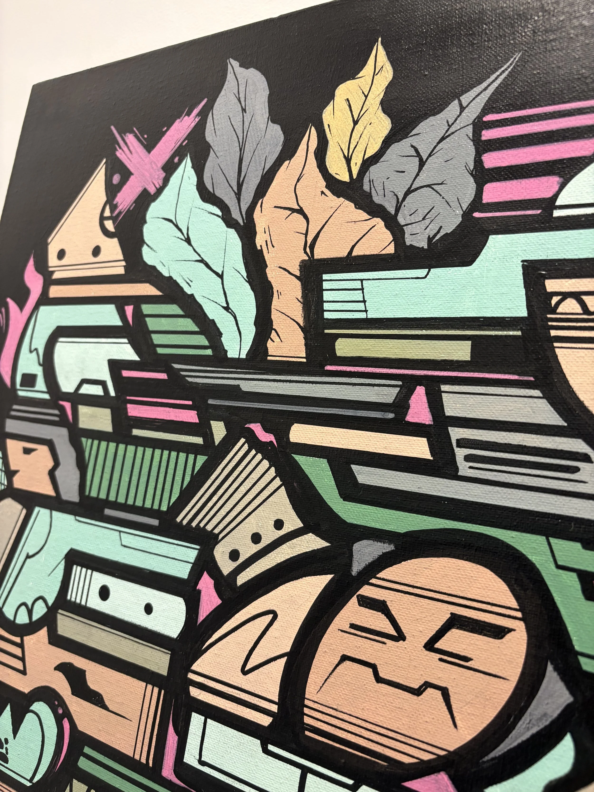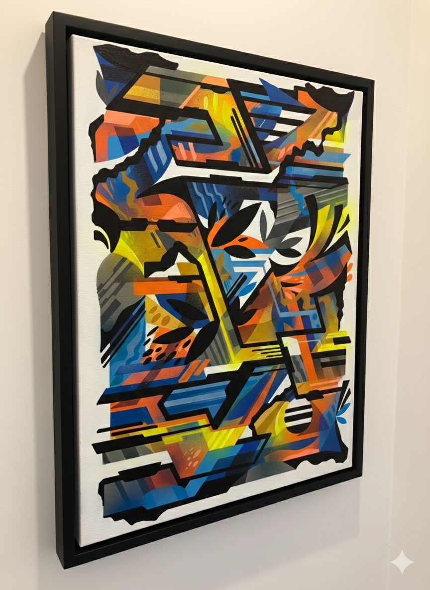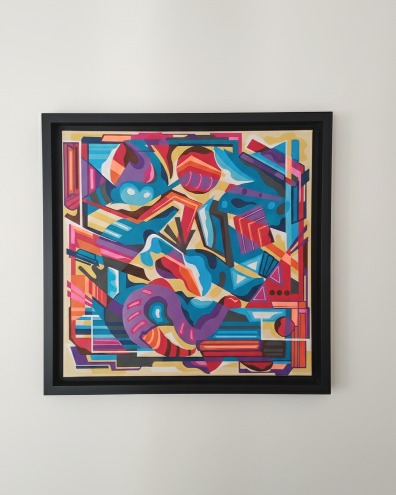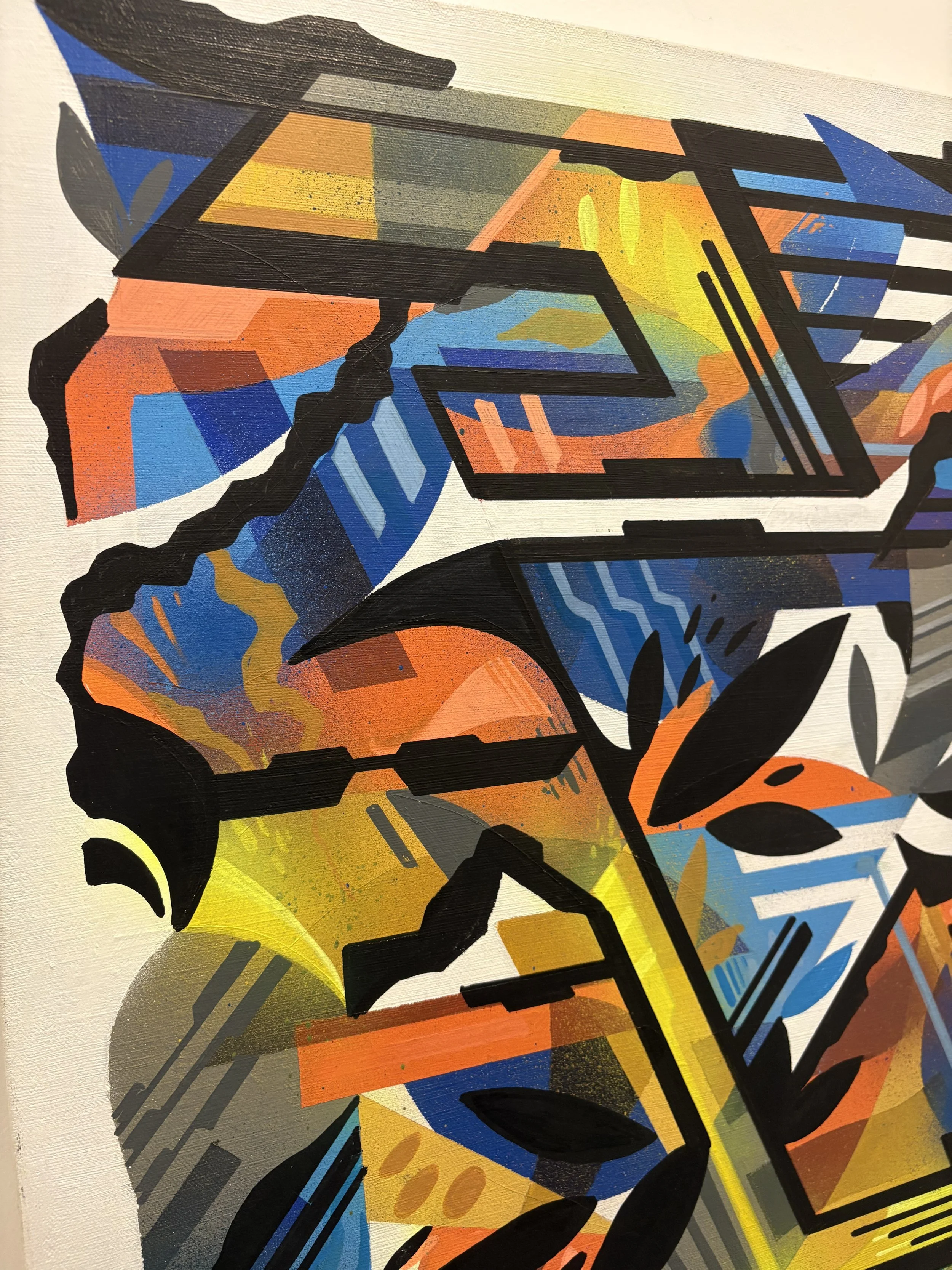 J’y explore l’équilibre entre abstraction et structure, en laissant la couleur et la composition devenir le terrain d’un dialogue plus intérieur.